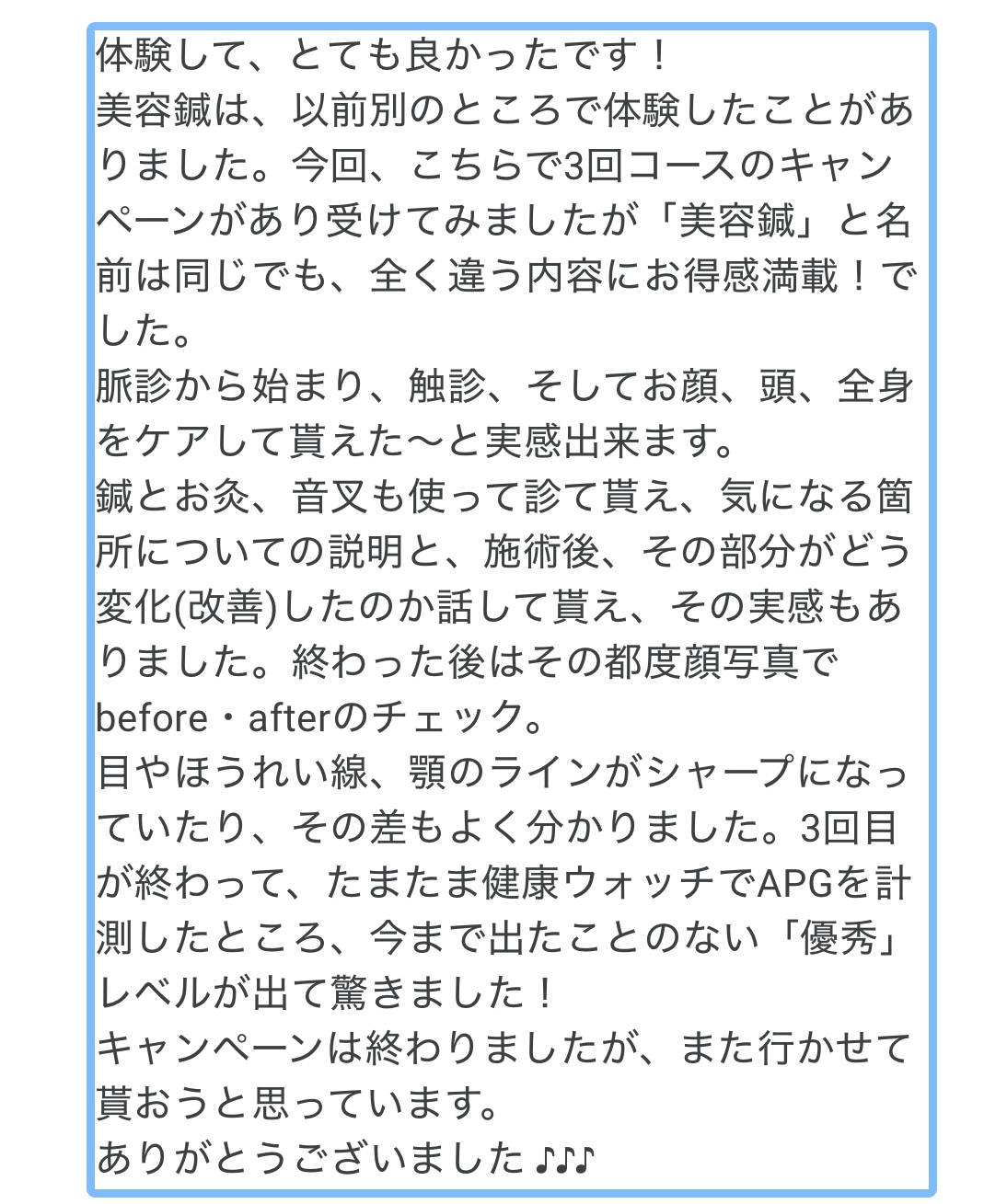 ありがたい口コミ、感謝いたします。変化を感じていただいてうれしいです。